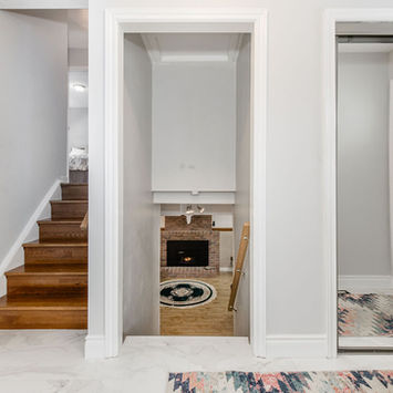 The lower level offers a spacious rec room plus a second renovated bathroom featuring a gorgeous oversized glass shower.
